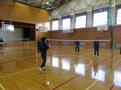 男子は体育館にてバトミントンです