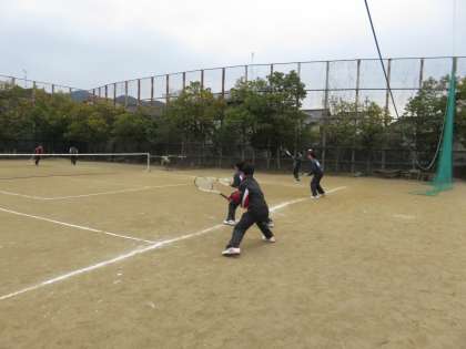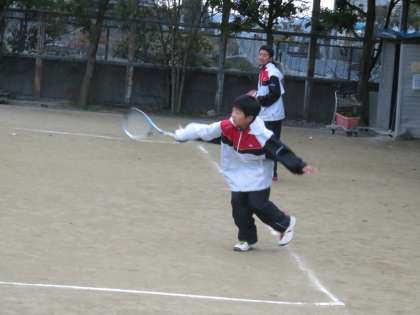 男子ソフトテニスは朝から気合の入った練習を続けています