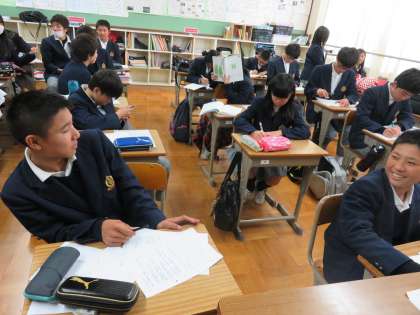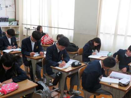 一人で黙々とする人や,前後左右の友だちと教えあいながらやる人など様々です