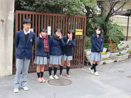 鏡山小学校にも生徒会本部が出向いて朝のあいさつを行っています