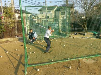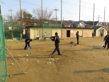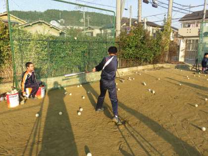 今日の朝練習はバッティングです
