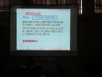 評議員会からは後輩から先輩への感謝のメッセージです
