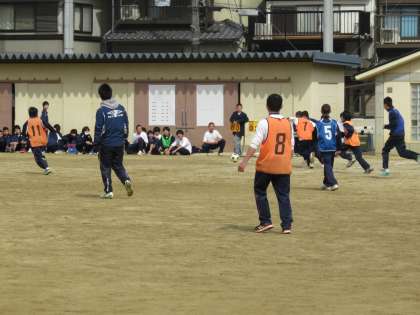 男子はグランドでサッカーです