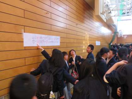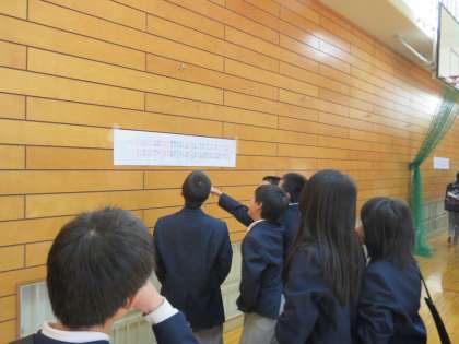 8:50から体育館で学級発表がありました