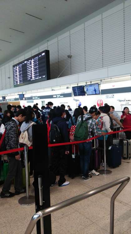 伊丹空港到着後,搭乗手続きです。