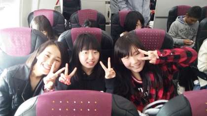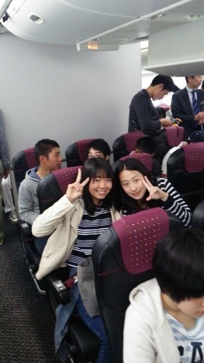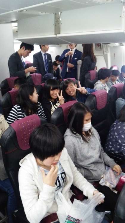 機内に入ると,ますます修学旅行気分が盛り上がります。