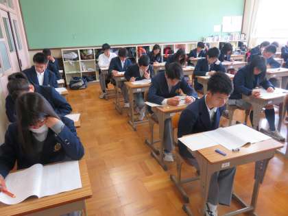 本日,3年生は1〜5限で全国学力・学習状況調査に取り組んでいます。
