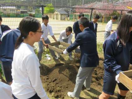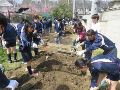 1・2年生は先週から菜園活動を始めましたが,3年生は修学旅行の関係で今日になりました。