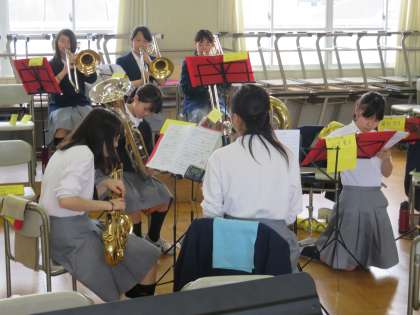 吹奏楽部の1年生の姿もみえます
