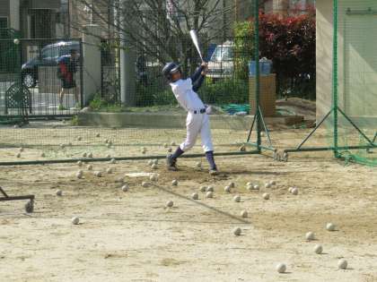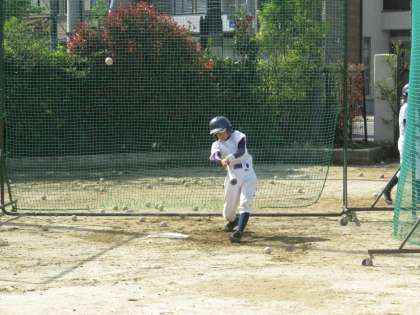 グランドで野球部がバッティング練習をはじめました