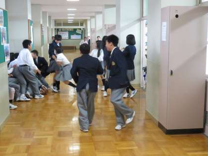 花山中学校では,授業に遅れないように授業のチャイムの鳴る1分前にアマリリスの曲がながれますので,それと同時に教室へはいります