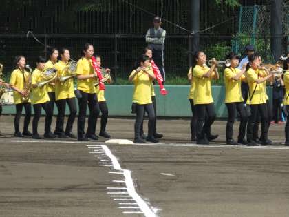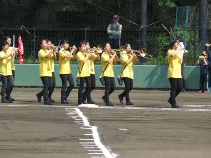 今日は,伏見桃山球場にて学童野球の開会式の演奏です