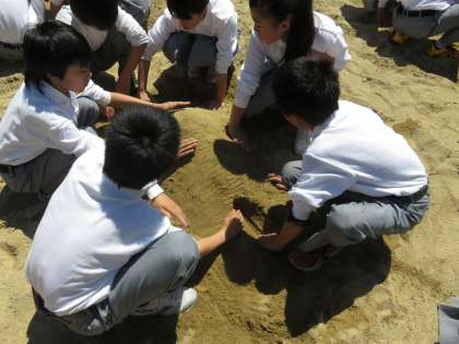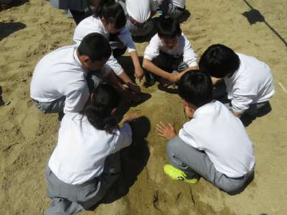 砂場でトンネルを作っているようですが,技術とどう関係するのでしょうか