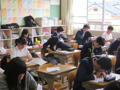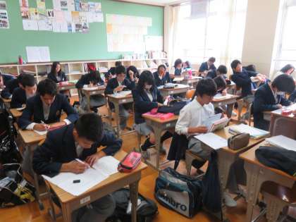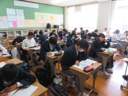今日から第1回定期考査前です。昨年から始まりました放課後の一斉学習が今年も行われています。30分間の自学自習タイムです。