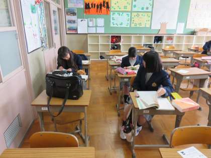 テスト前に自主的に早く来て早朝学習をしています