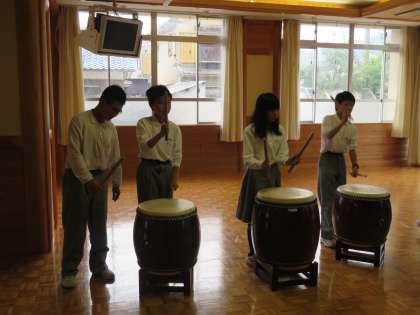 5月から毎週1回,昼休みに太鼓の練習をしています