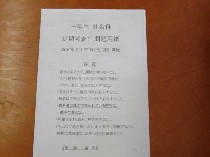 第1回定期考査2日目