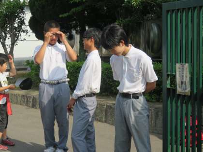 小中合同の朝のあいさつ