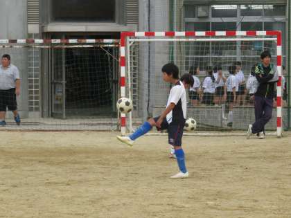 グランドでの朝練習は野球部だけでしたが,サッカー部も加わり活気にあふれています