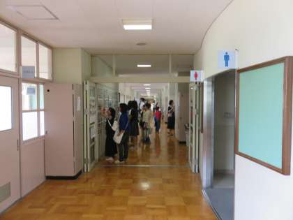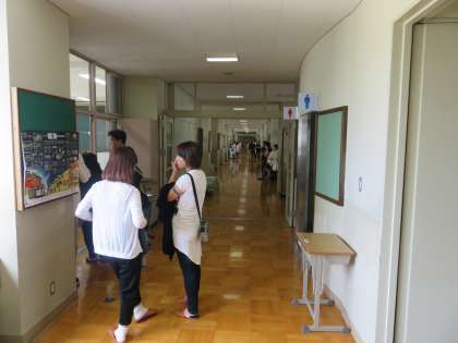 教室には遠慮をされて多くは入られませんが,廊下から多くの方が参観されています