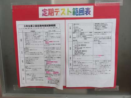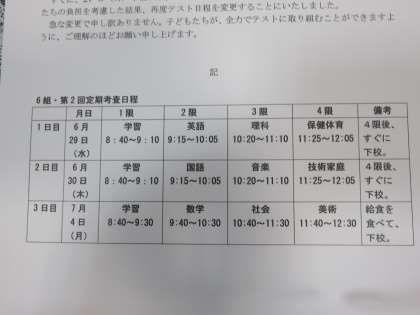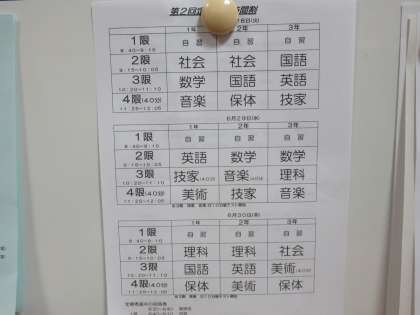 定期考査の時間割です