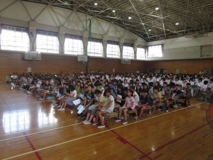 昨日の火曜日13:50より地生連主催で3校合同薬物乱用防止講演会が花山中学校体育科にて開かれました