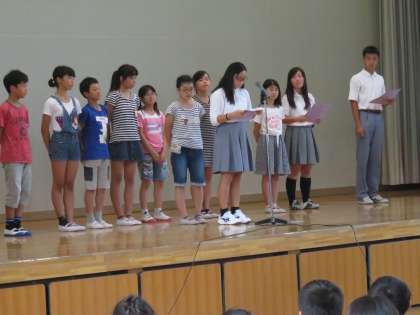 講演後,小中学校児童生徒による薬物根絶宣言が採択されました