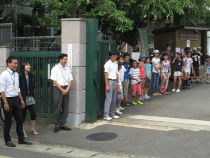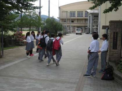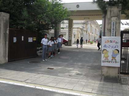 月曜日の恒例の3小中学校での朝のあいさつ運動です