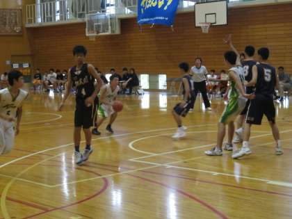 力のある相手に対し,オールコートマンツーマンでプレッシャーをかけ,果敢に攻め込みます