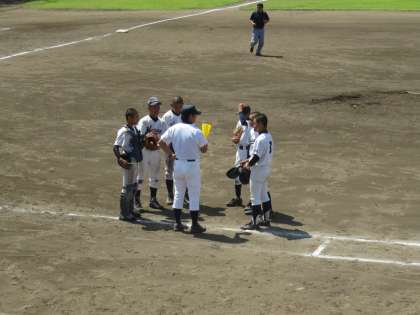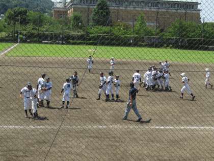 花山が7回2アウトまでこぎつけるものの,エースが指の爪を故障し,無念の降板。急遽登板した2年生が1点を失うものの,最後のバッターを三振に打ち取り,ふんばりました。