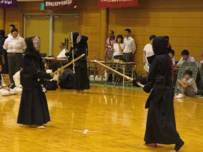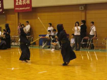 2回戦は延長にもつれこみましたが,1本をとられ敗退しました。秋の新人戦に向けて夏場の稽古をがんばってください。