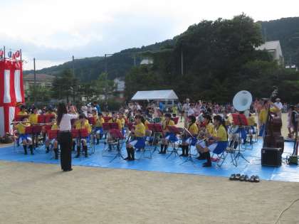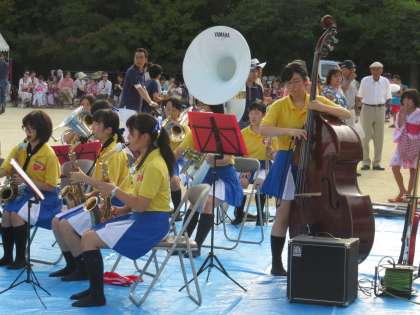 陵ヶ岡夏まつりで吹奏楽部が演奏です