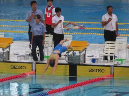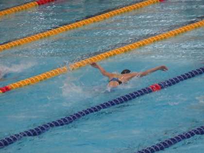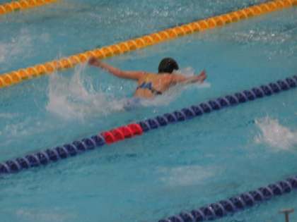 水泳の個人で府大会に出場した生徒がいます。バタフライでがんばっています