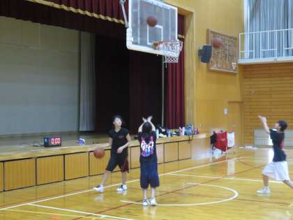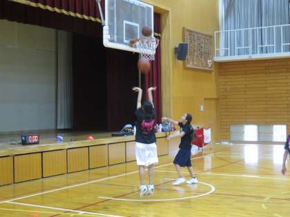 女子バレー部の横では女子バスケットボール部が練習しています