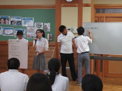 あいさつ運動や空き缶・エコキャップ運動など各校独自の取組が評価されるなか,この7月に小中合同で行った薬物乱用防止講演会と乱用根絶の宣言採択も,話題になりました。