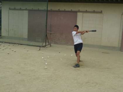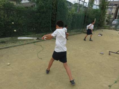 グランドでの野球部朝練習です。