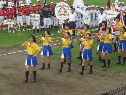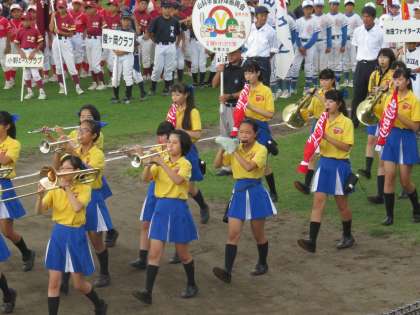 吹奏楽部が学童野球の開会式のお手伝いで,演奏を行いました