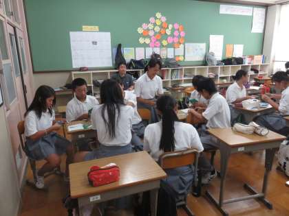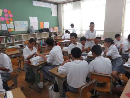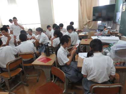 教室では学年展示のモザイク画に黙々と取り組んでいます。