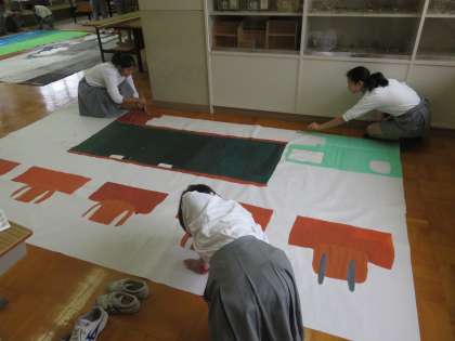 3年生の学年劇はキャストだけでなくスタッフのほうも道具作りが,順調にすすんでいるようです