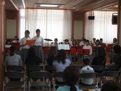 PTAが月に一度,多目的室でカフェを開いています。地域のコミュニケーションの場として中学校を活用するためですが,今日は吹奏楽部がカフェでミニコンサートを披露しました
