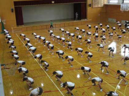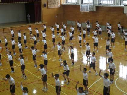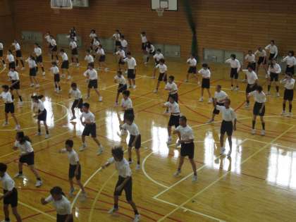 今日初めて,体育大会での学年演技を学年全体であわせてみました。
