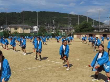 2年生は法被と鳴子を使用して,最後の調整に余念がありません