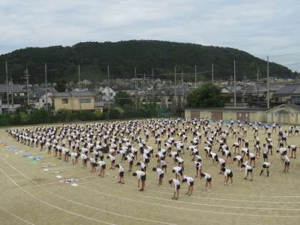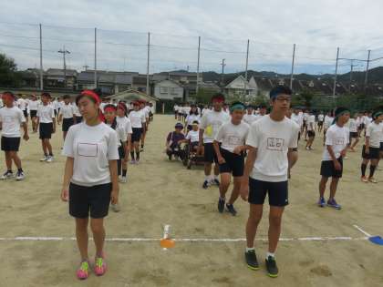 ウオーミングアップ体操も終わり,いよいよ競技開始です