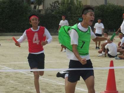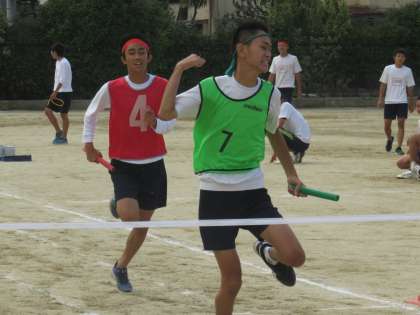 さすが3年男子です。迫力あるリレーが展開されました。