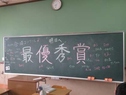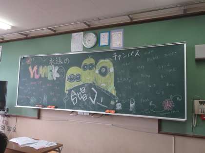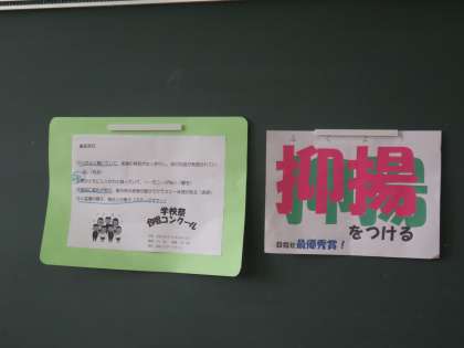 各学級の黒板には生徒たちが気持ちを盛り上げるための工夫をしています
