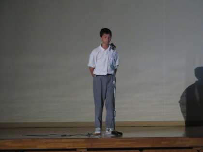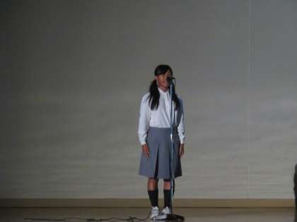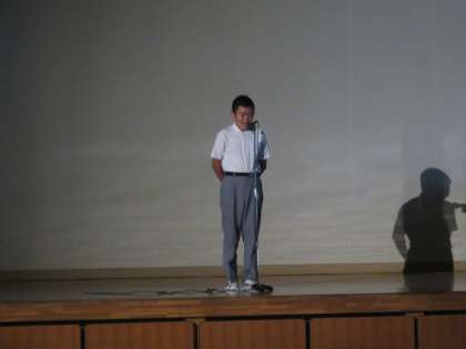 まずは1年生による暗唱です。暗唱というより自己紹介ですね。