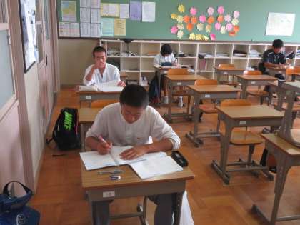1年生の時間割は13日:理科・社会・国語,14日:英語・数学です