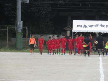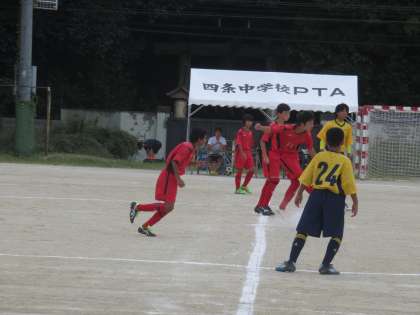 サッカー部が午後から四条中学にて新人戦の予選リーグ戦を戦いました。