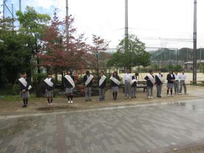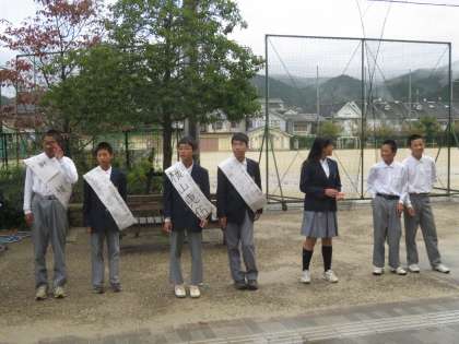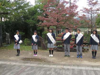 生徒会本部の改選が始まり,今日から立候補者の校門での選挙運動がはじまりました