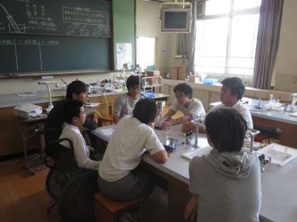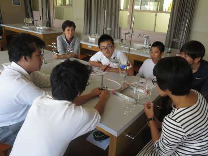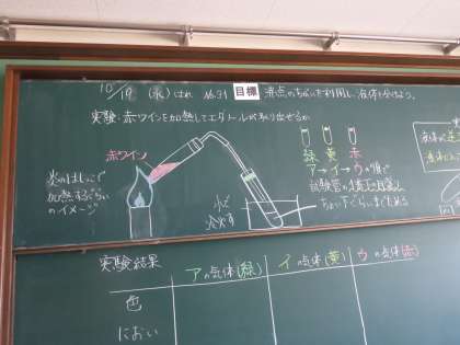 6組が理科室で,赤ワインからエタノールを取り出す実験です。